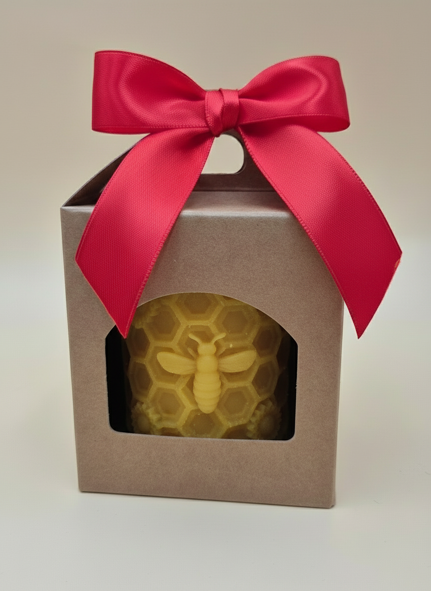 Il suo elegante motivo a favo esagonale con ape in rilievo rende ogni pezzo unico, inserita in una confezione elegante ed ecosostenibile, perfetta come idea regalo o decorazione Natalizia.