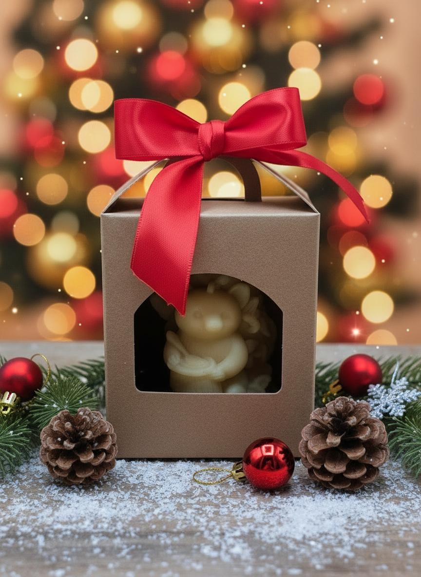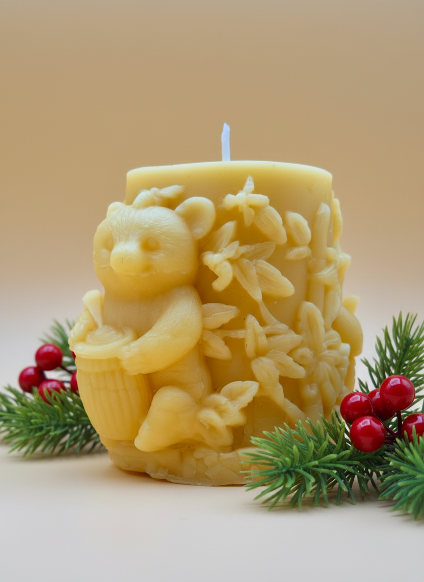 Candela Natalizia in cera d’api motivo Orso Goloso