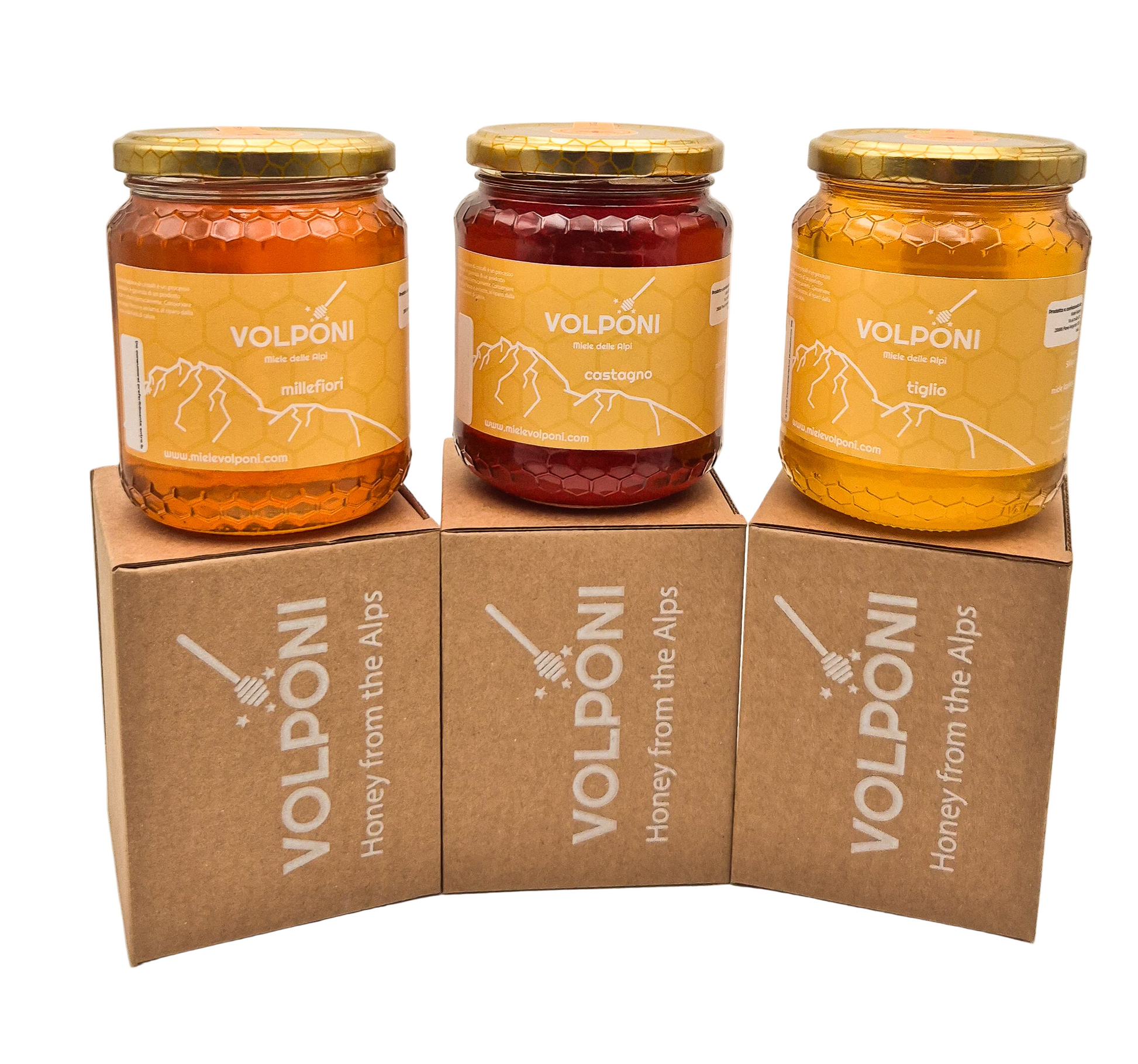 Un viaggio nei sapori autentici della montagna in tre vasetti, per portare sulla tua tavola, o su quella di chi vuoi bene, la varietà e la ricchezza del nostro lavoro con le api.